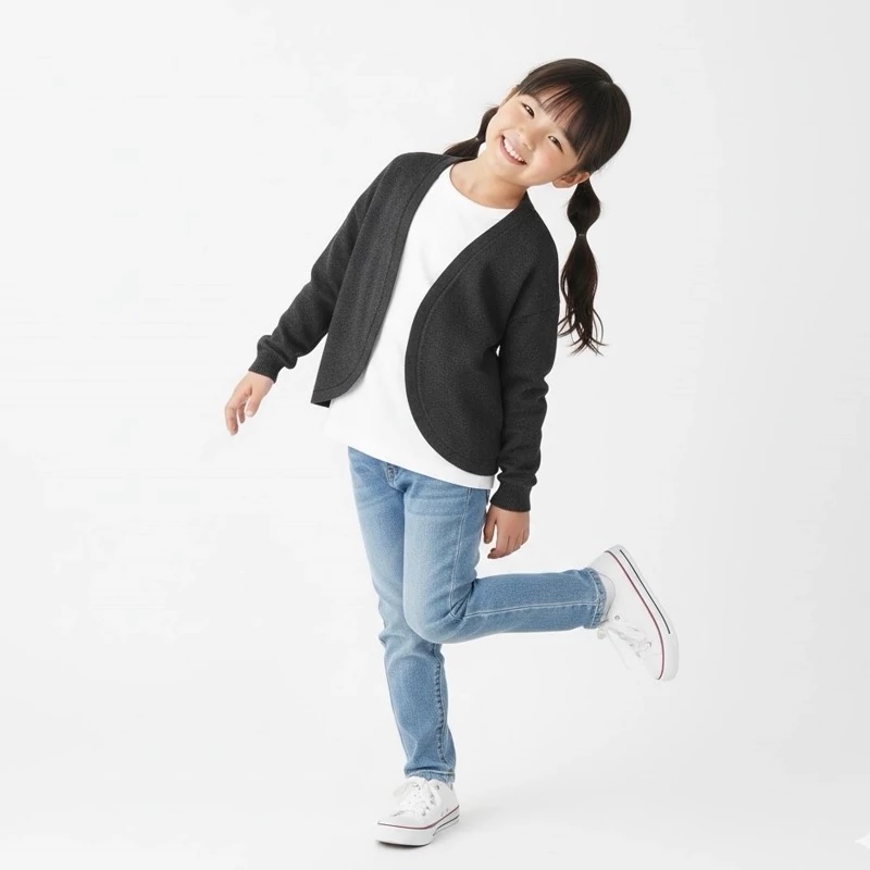 این ژاکت بافت نازک پیپرتس با ترکیب منحصربهفرد الیاف، نرمی و لطافت خاصی دارد و به دلیل درصد الاستان موجود، کاملاً انعطافپذیر و مناسب تحرک کودکان است. طراحی جلو باز بدون دکمه، پوشیدن و درآوردن آن را برای کودکان آسان میکند.